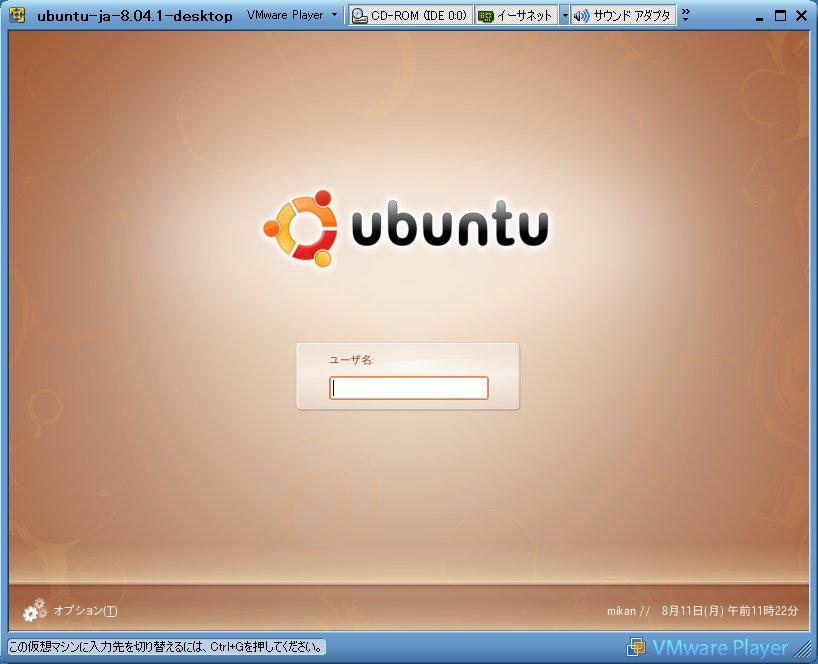 Ubuntu 8.04.1 Desktop 日本語版。(・ω・)
