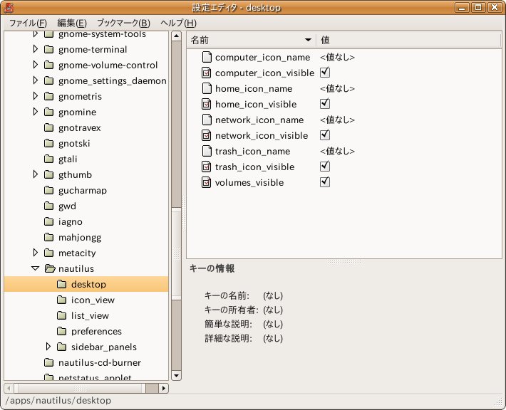 /apps/nautilus/desktopと選んで表示したいアイコンにチェックを入れる。