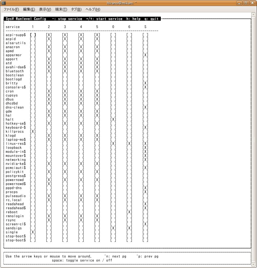 パッケージマネージャを使ってsysv-rc-confをインストールする。