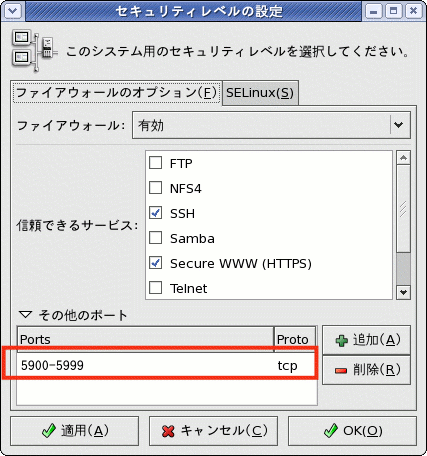 VNCは5900-5999までを画面番号0から99までに割り当てます。